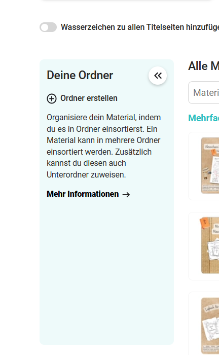 Das Verschieben von Material in Ordner hat keinerlei Auswirkung auf die ursprüngliche Übersicht "Alle Materialien". Diese bleibt weiterhin erhalten.