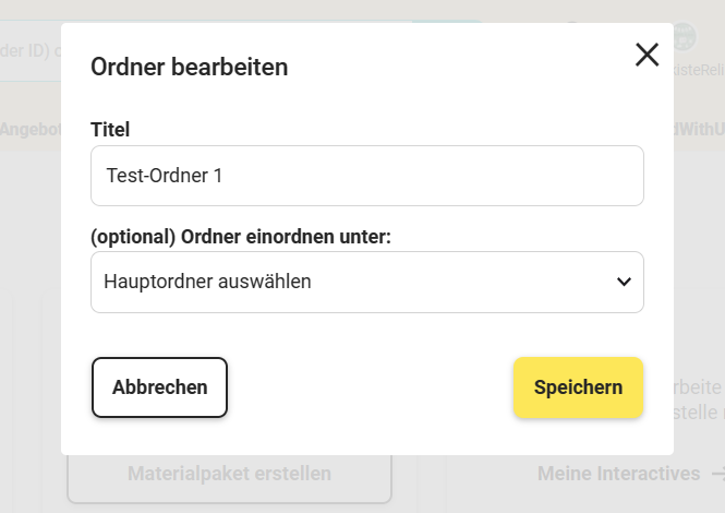 Um den Ordner zu bearbeiten, klicke auf das Stift-Symbol, das sich hinter dem Titel des Ordners befindet. Dadurch öffnet sich ein Bearbeitungsfenster, in dem du den Titel des Ordners anpassen und auch die Ordnerstruktur verändern kannst. Du hast die Möglichkeit, den Ordner einem anderen übergeordneten Ordner zuzuordnen oder ihn ganz ohne Übergeordneten zu lassen, falls gewünscht.