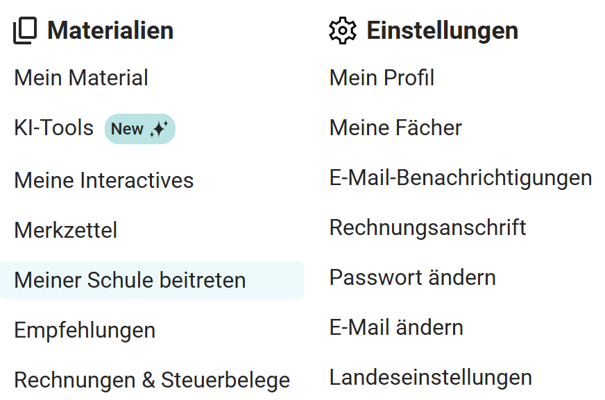 Wenn du den Code eingegeben hast, wird dein/deine Schuladmin informiert und kann dich der Schule hinzufügen. Sobald deine Anfrage angenommen wurde, wirst du per Mail informiert. Wo du anschließend das Material findest, erfährst du hier.