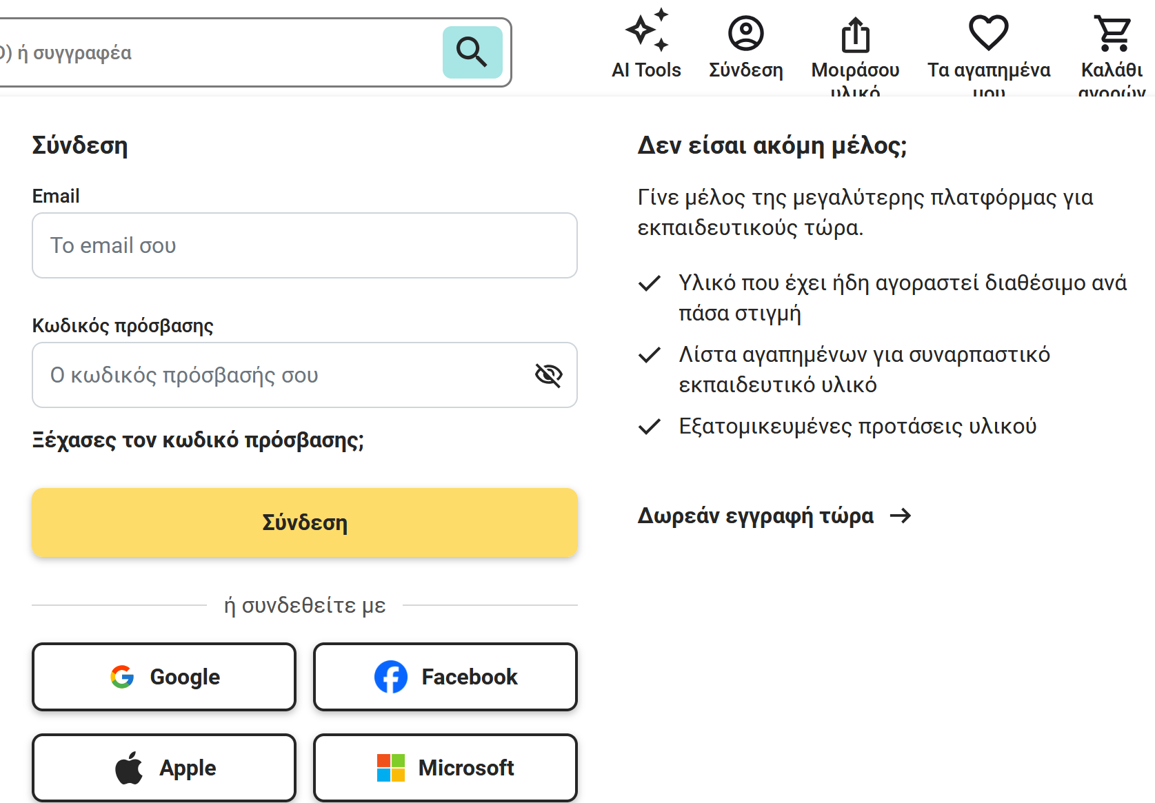 Ναι, μπορείς να δημιουργήσεις το δικό σου λογαριασμό ακόμη και μετά από πολλές αγορές υλικού. Για να εμφανιστούν όλες οι προηγούμενες αγορές σου στο νέο σου λογαριασμό χρήστη στην ενότητα "Το υλικό μου", πρέπει να εγγραφείς με τη διεύθυνση email με την οποία είχες προηγουμένως παραγγείλει από εμάς.