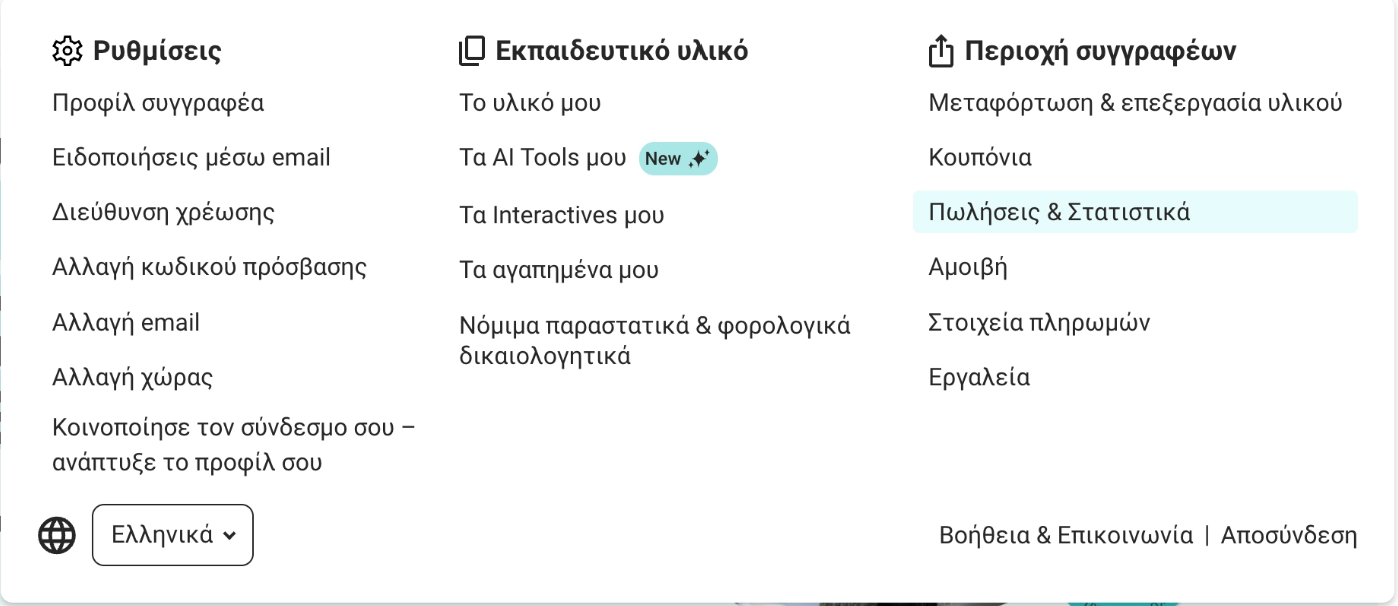 Το Dashboard Συγγραφέα είναι η καρτέλα όπου μπορείς να παρακολουθείς όλα τα στατιστικά των υλικών σου στο eduki με μία ματιά.