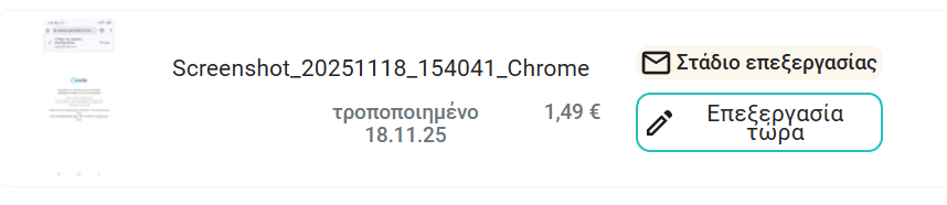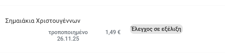 – να έχει προστεθεί μια σημείωση/παρατήρηση από την ομάδα ελέγχου. Κάνοντας κλικ στο εικονίδιο επεξεργασίας (μολύβι), μεταφέρεστε απευθείας στη φόρμα συμπλήρωσης. Σημείωση: Αν διαπιστώσετε ότι όλες οι πληροφορίες είναι πλήρεις, τότε πρόκειται απλώς για ενημερωτική σημείωση της ομάδας, την οποία μπορείτε να αγνοήσετε.Γκρι ένδειξη: Η κατάσταση αυτή εμφανίζεται όταν: