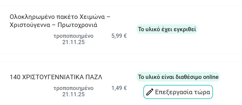 Το υλικό έχει εγκριθεί από την ομάδα ελέγχου και είναι ήδη διαθέσιμο online, ολοκληρωμένο και χωρίς εκκρεμότητες.