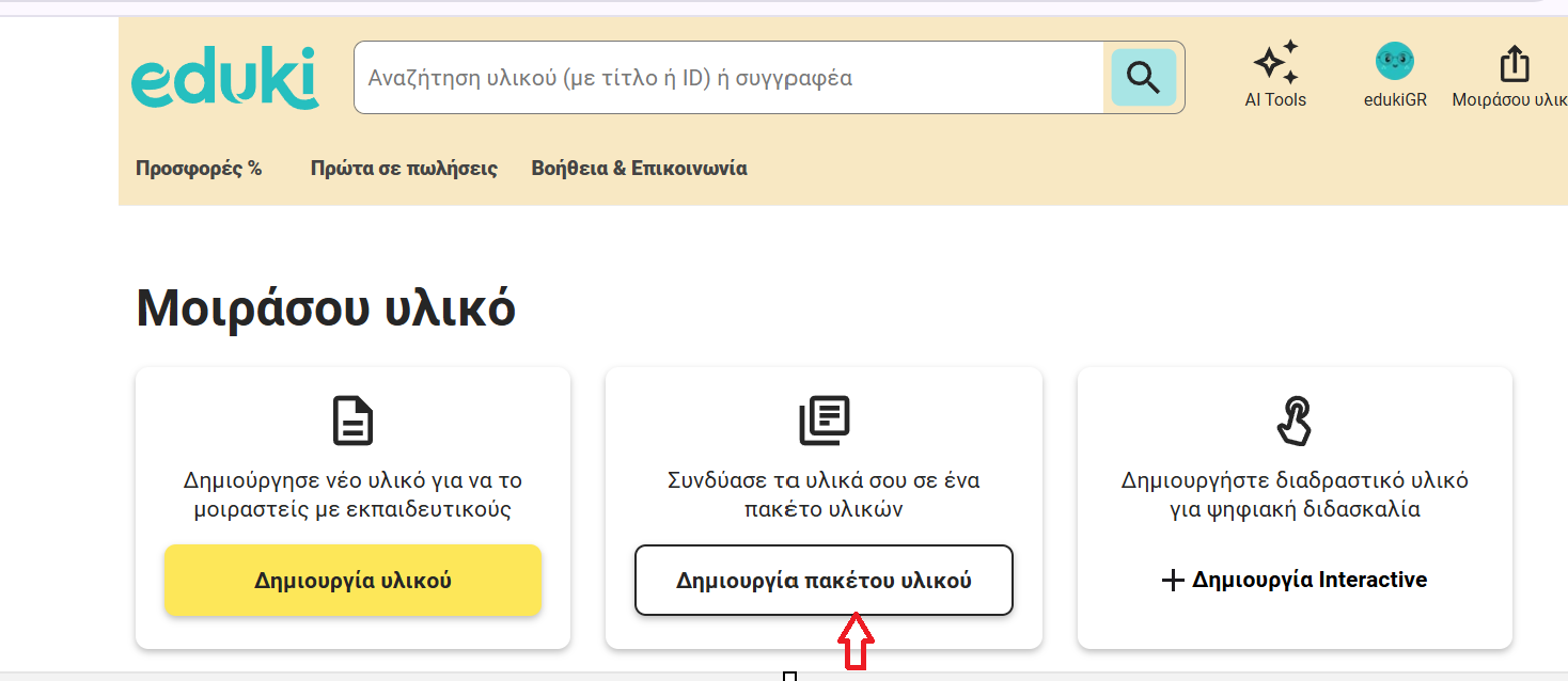 Τα πακέτα υλικών είναι συλλογές υλικών που μπορούν να δημιουργηθούν από μεμονωμένα υλικά που έχουν ήδη ανέβει στην πλατφόρμα του eduki.