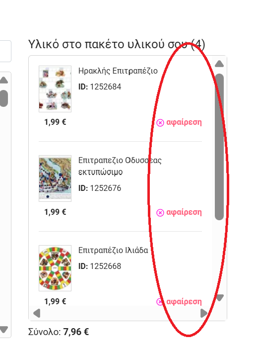 Ενεργοποίηση μεμονωμένου υλικού: Το πακέτο υλικών πιθανώς απενεργοποιήθηκε επειδή ένα μεμονωμένο υλικό που περιλαμβάνεται σε αυτό απενεργοποιήθηκε ή διαγράφηκε. Ακόμη και η αναστολή ενός μεμονωμένου υλικού μπορεί να προκαλέσει την απενεργοποίηση ενός πακέτου υλικών σε ορισμένες περιπτώσεις. Για αυτόν τον λόγο, όταν απενεργοποιείτε/παύετε/διαγράφετε ένα υλικό, εμφανίζεται ένα αναδυόμενο παράθυρο με μια αντίστοιχη ειδοποίηση. Λύση: είναι καλύτερο να ελέγξετε ότι τα υλικά που περιέχονται στο πακέτο δεν έχουν τροποποιηθεί! Ακολουθήστε τα παρακάτω βήματα: εντοπίστε το πακέτο υλικών στο αρχείο σας και κάντε κλικ στο εικονίδιο με το μολύβι για να το τροποποιήσετε. Για να αφαιρέσετε το απενεργοποιημένο υλικό από το πακέτο, εντοπίστε το αντίστοιχο ID στη λίστα στα δεξιά και κάντε κλικ στην αφαίρεση.