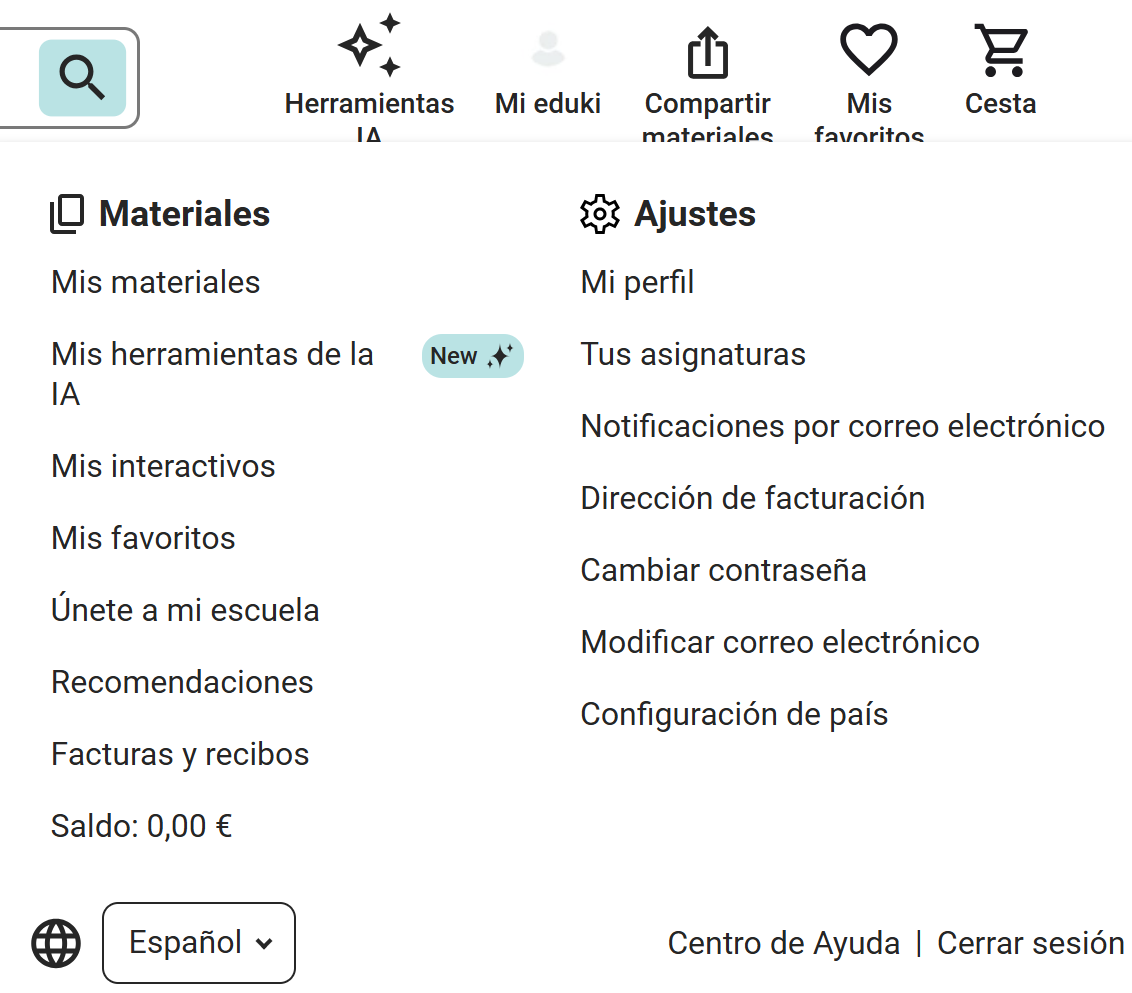 Te recomendamos que te registres gratuitamente en www.eduki.com/es. De este modo, podrás acceder en tu cuenta, de manera fácil y cómoda, a todos los materiales que has adquirido. Esto es especialmente ventajoso cuando los autores editan o amplían los materiales que ya has comprado. Aquí también encontrarás todas las facturas y recibos que necesitas para llevar a cabo tu declaración de la renta. También puedes seleccionar tus materiales de interés y añadirlos a “Mis favoritos”, así como también, seguir a los autores y autoras de tu interés para no perderte sus ofertas de descuento. En la sección "Facturas y recibos" obtendrás un resumen anual de tus compras..