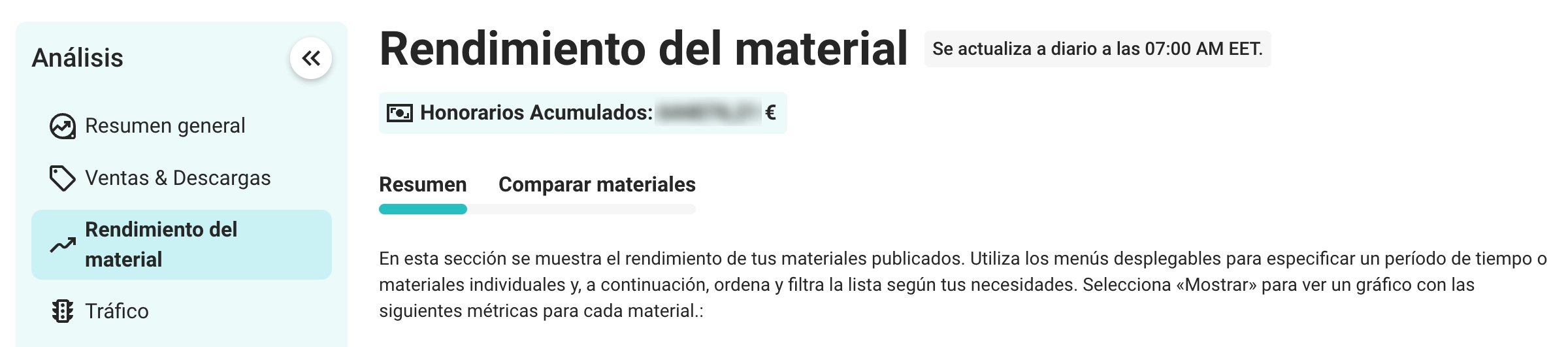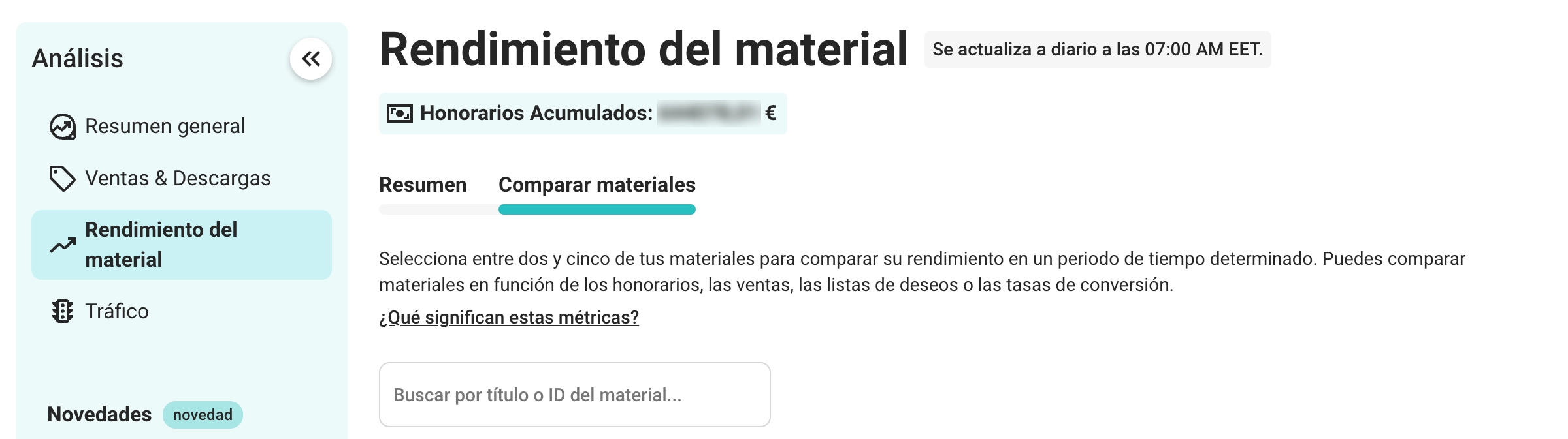 Esta sección muestra cómo se están desempeñando tus materiales individuales.
