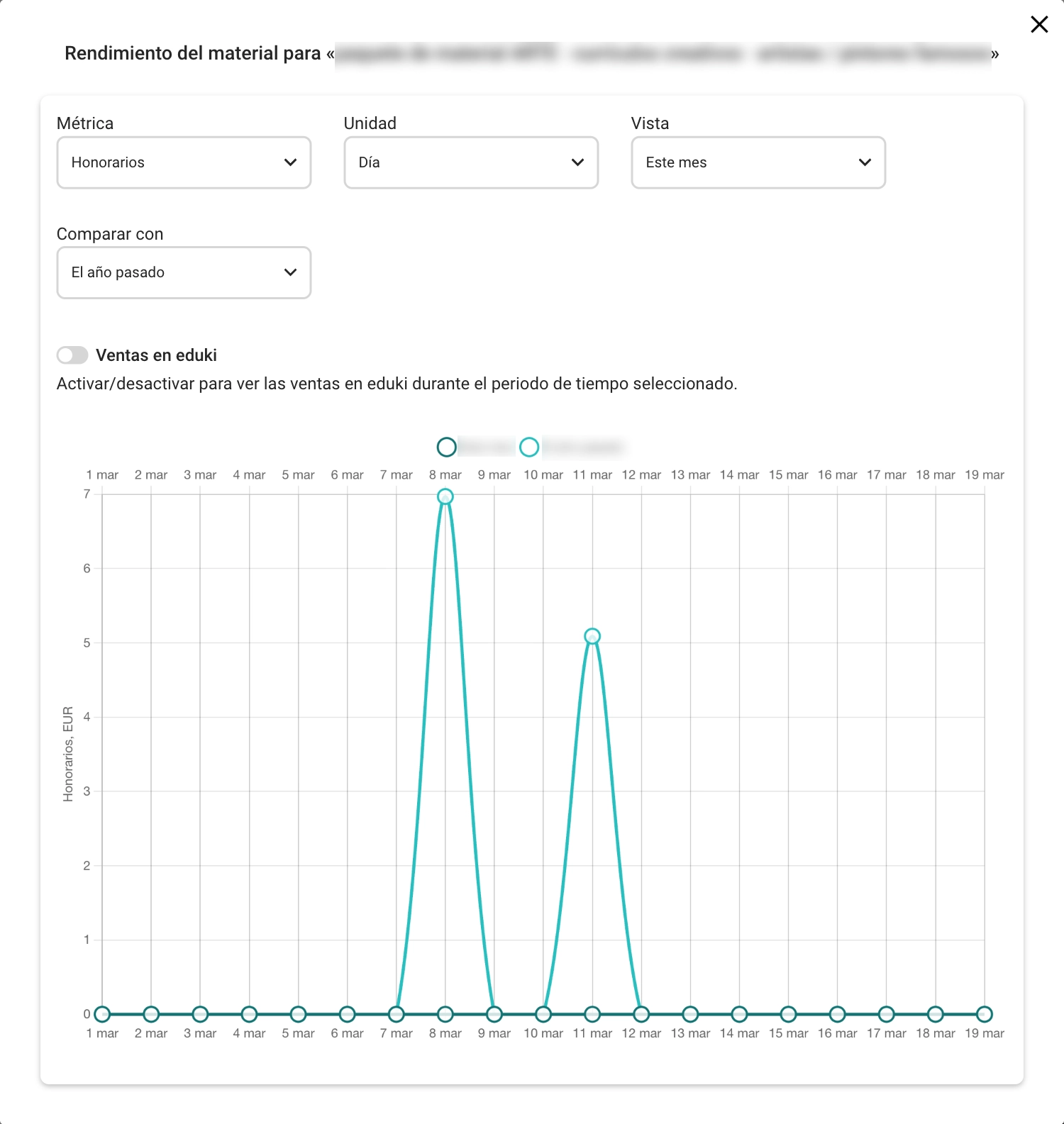 En la columna Gráfico, puedes abrir un gráfico visual para cada material y ver su rendimiento a lo largo del tiempo.