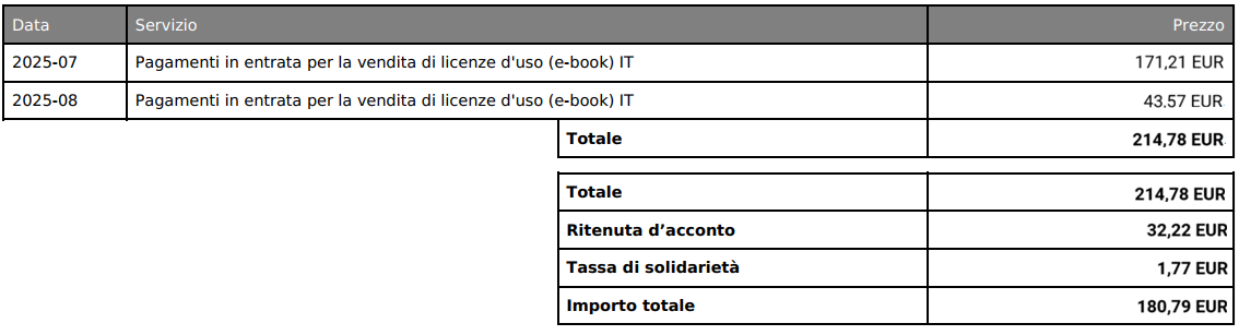 Quando un'autrice o un autore carica materiali sulla piattaforma, presenta un'offerta vincolante per siglare un contratto sulla licenza d'uso dei materiali stessi. Tramite questa licenza, le autrici e gli autori ricevono una parte del prezzo d'acquisto (la royalty) ogni volta che viene effettuata una vendita. Poiché quindi autrici e autori sono considerati licenzianti siamo obbligati, ai sensi del summenzionato art. 50C della EStG e della convenzione contro le doppie imposizioni, a effettuare le ritenute alla fonte sui loro compensi. Puoi trovare maggiori informazioni al seguente link: https://www.bzst.de/EN/Businesses/Withholding_taxes/withholding_taxes_node.html