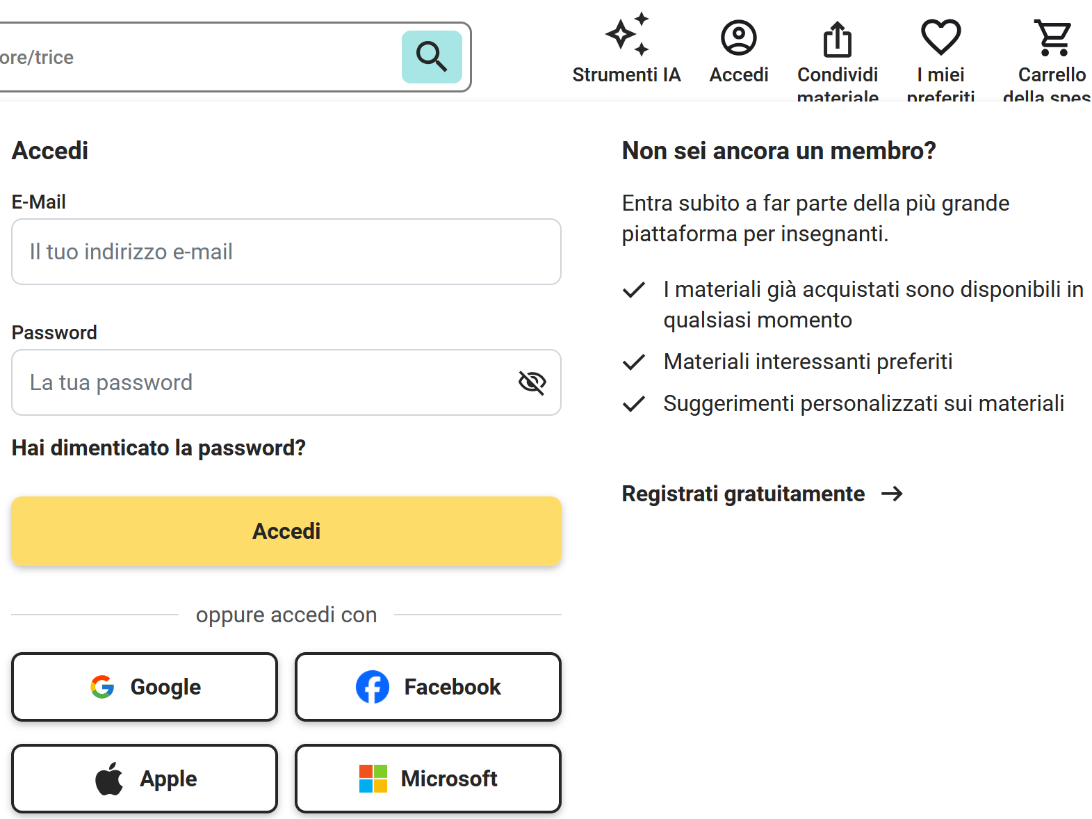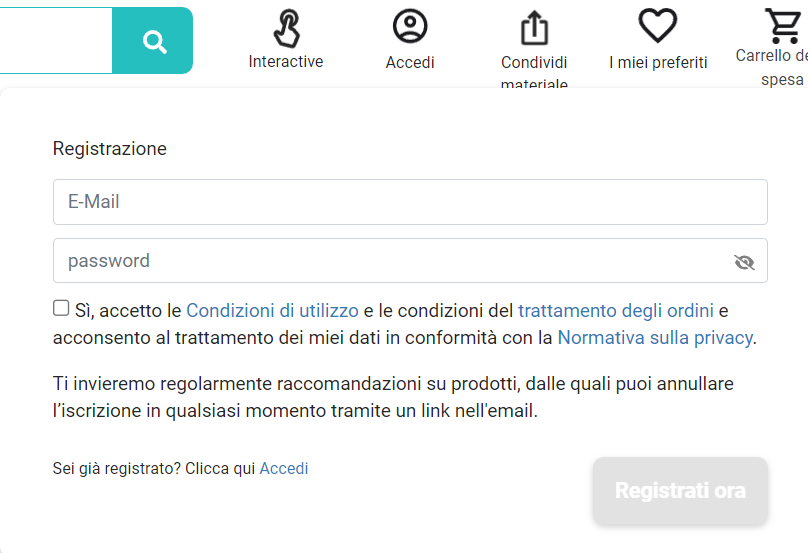 Sì, è possibile creare un proprio account anche dopo aver effettuato più acquisti. Affinché tutti gli acquisti precedenti vengano visualizzati nel nuovo account alla voce "I miei materiali", è però necessario registrarsi con l'indirizzo e-mail utilizzato per tali ordini.